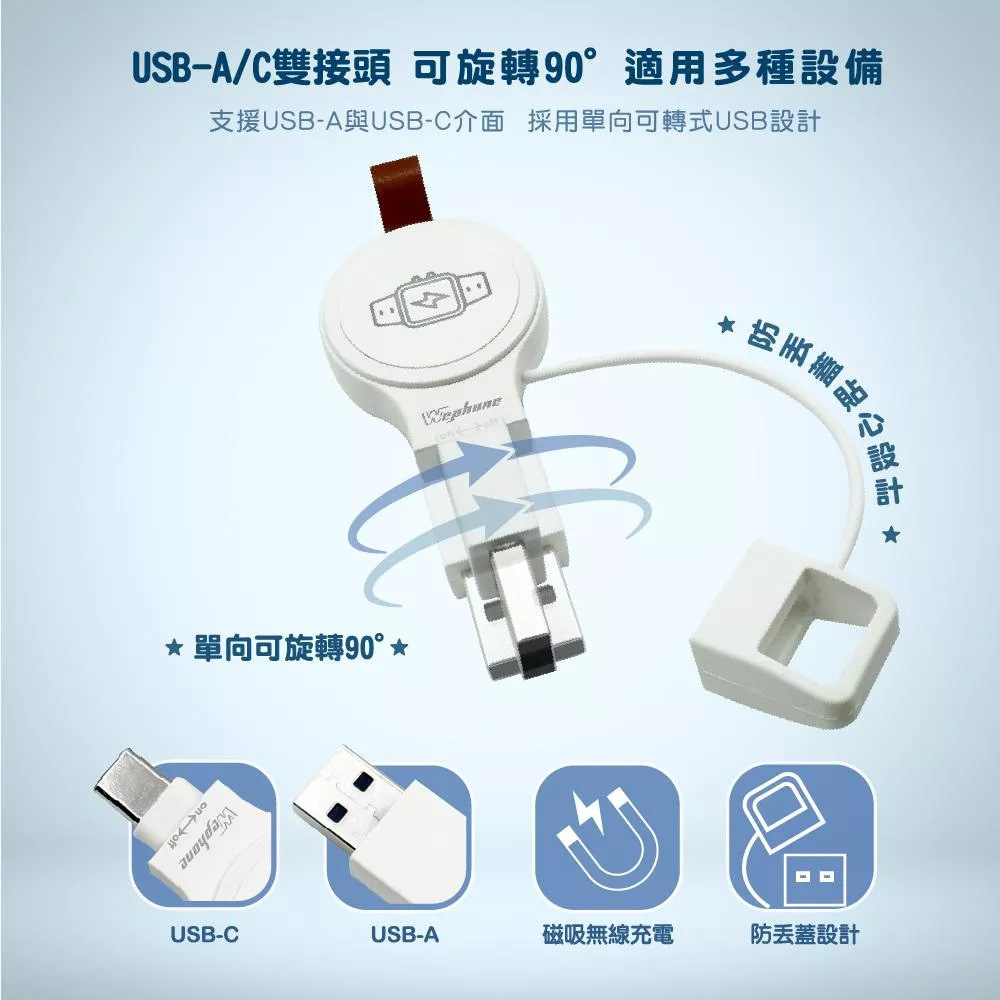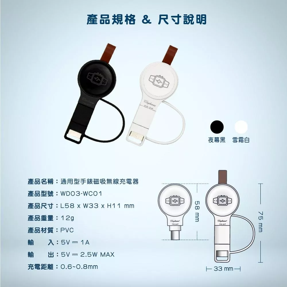 【Wephone】通用型手錶磁吸無線充電器_WD03-WC01 | 輕巧便攜 可調式接頭 防丟蓋設計 皮革掛帶