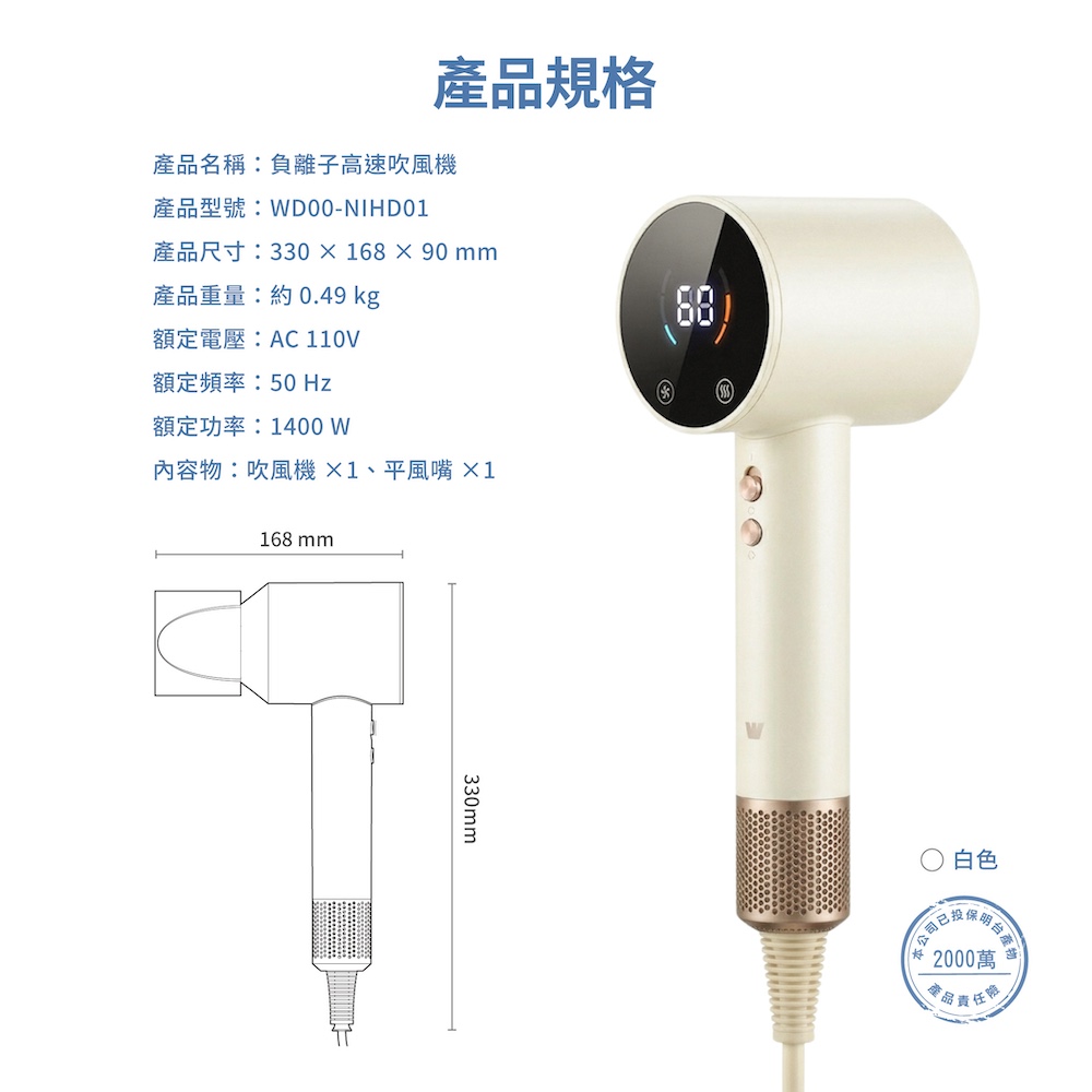 【Wildex】負離子高速吹風機 | BSMI 智能恆溫 鎖水 2億高濃度負離子 柔順 輕巧 防卡髮進風