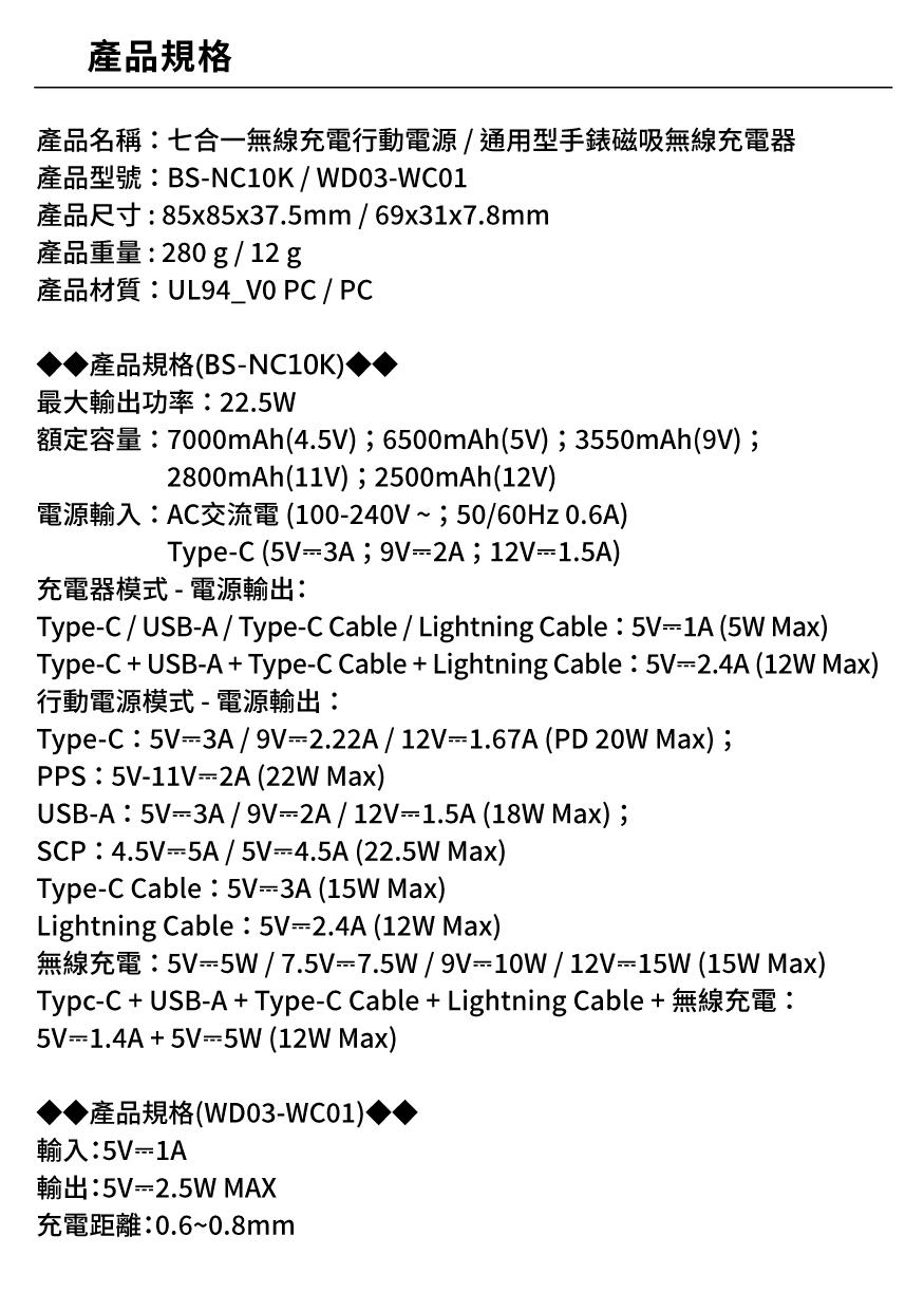 【Wephone】7+1無線充電行動電源10000mAh_BS-NC10K/WD03-WC01