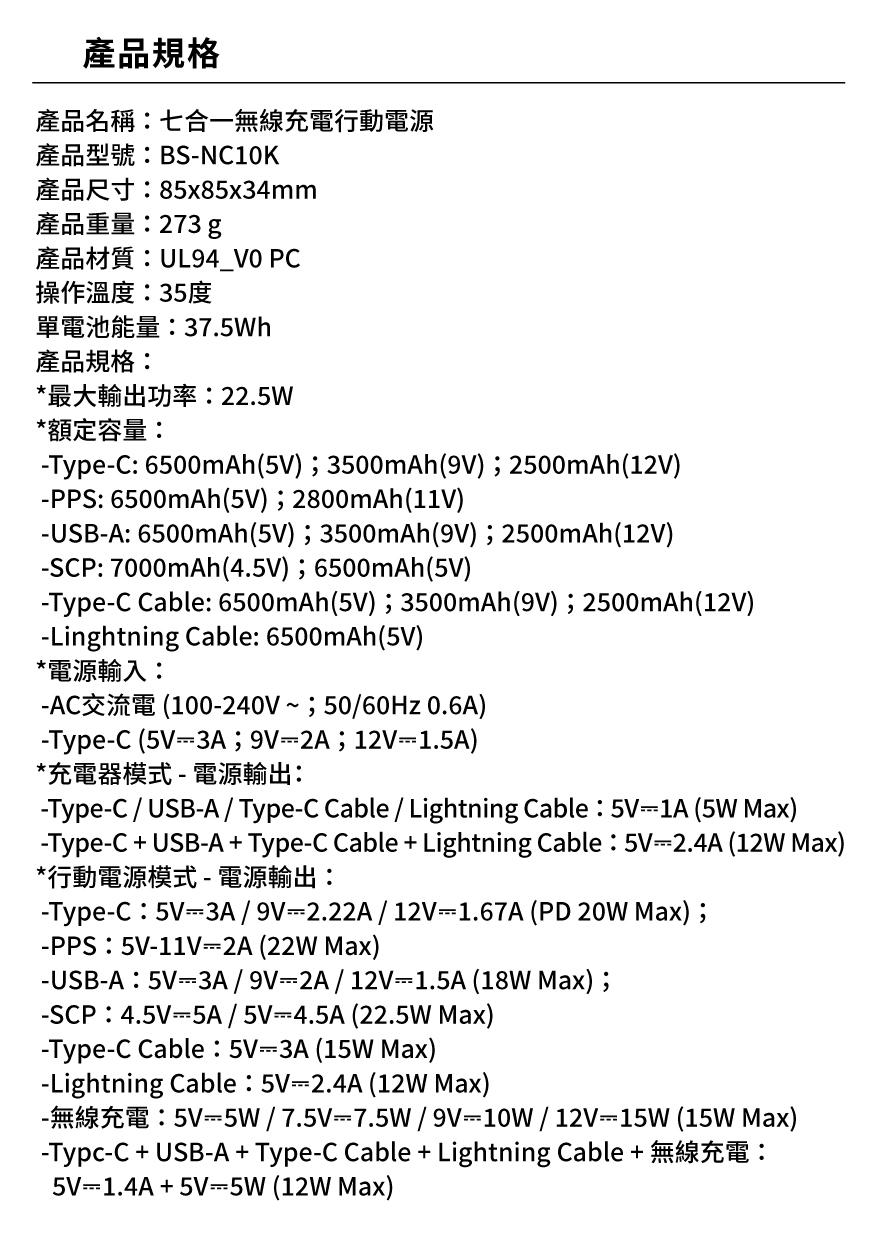 【Wephone】七合一無線充電行動電源_BS-NC10K