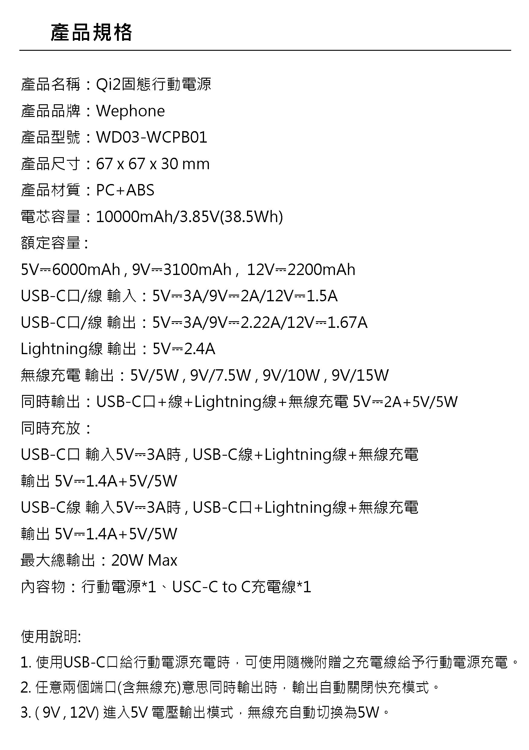 【Wephone】Qi2固態行動電源_WD03-WCPB01
