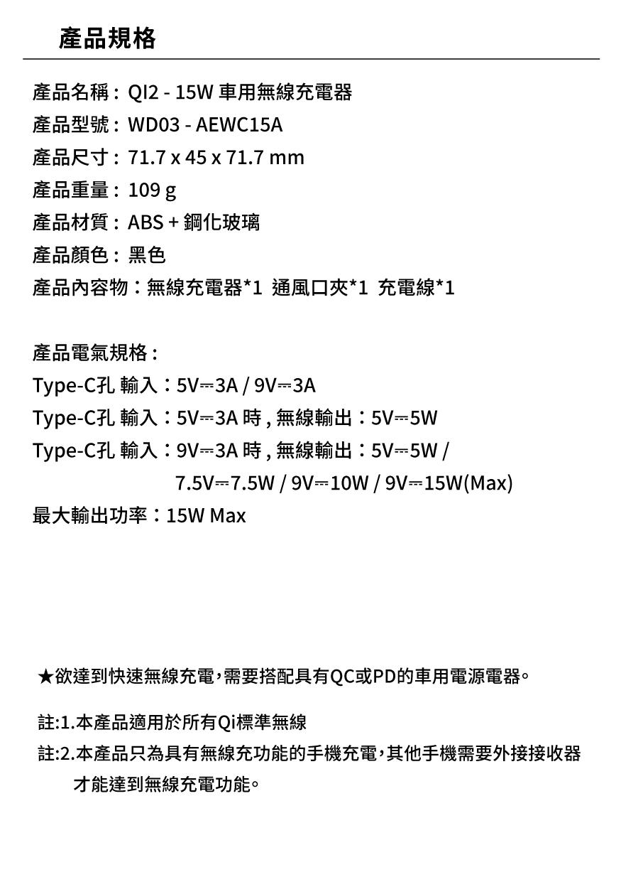 【Wephone】23) QI2-15W車用無線充電器_WD03-AEWC15A